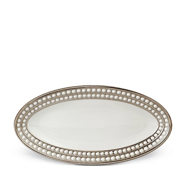L'Objet Perlee Platinum Oval Platter, 14 x 7