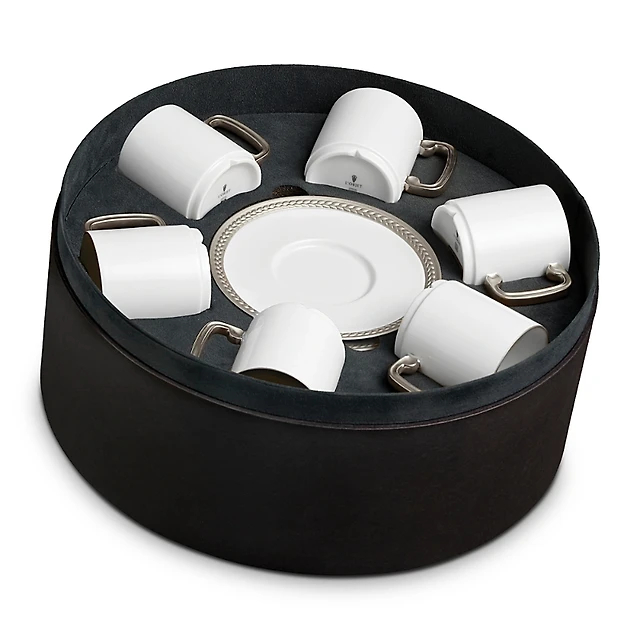L'Objet Soie Tresse Platinum Espresso Cup & Saucer Gift Box