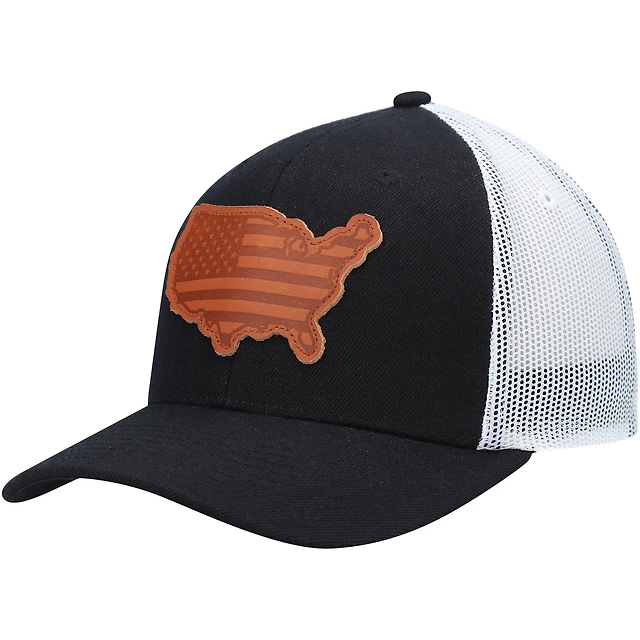 Men's Local Crowns Black USA Leather State Applique Trucker Snapback Hat