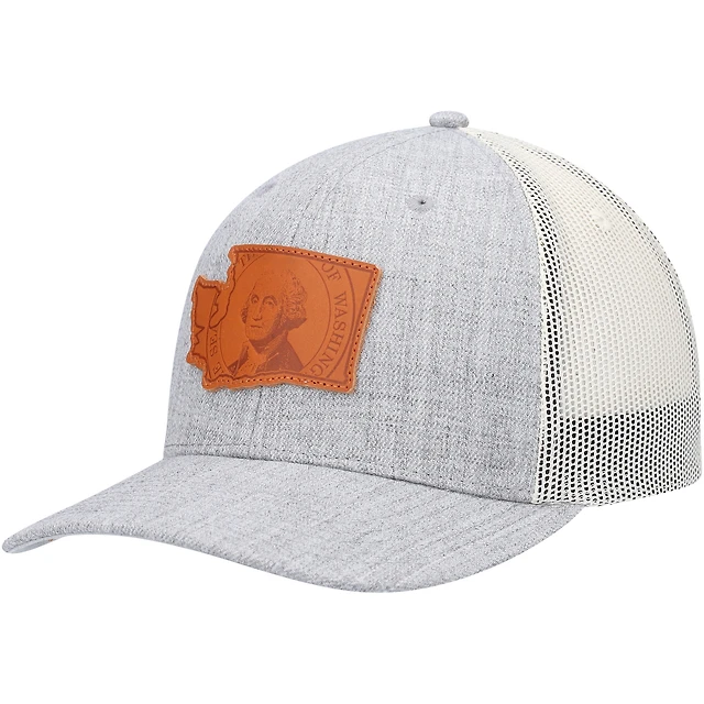 Men's Local Crowns Heathered Gray Washington Leather State Patch Trucker Snapback Hat