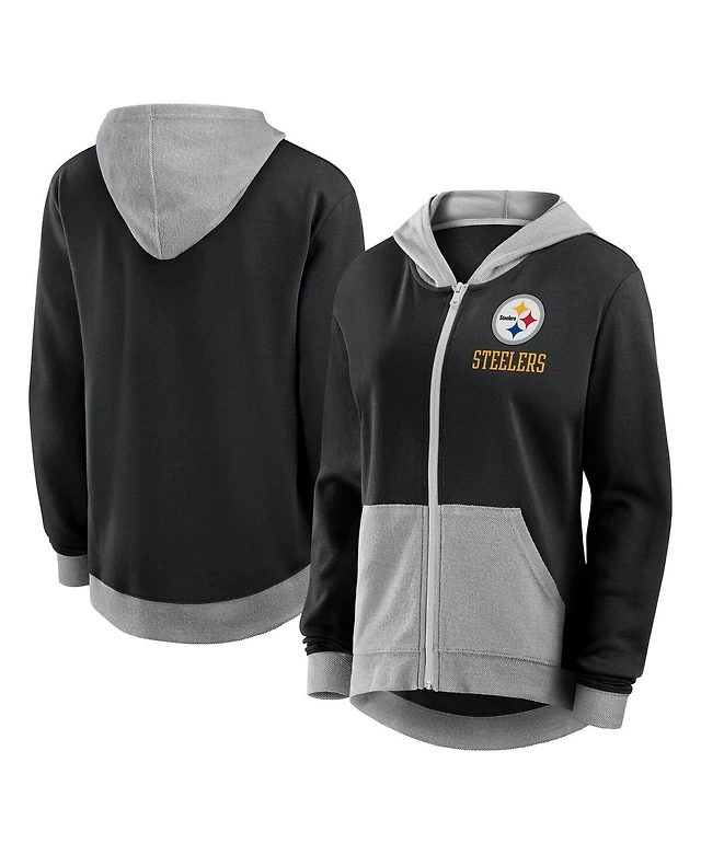 Logo Athletic Women's Black Pittsburgh Steelers Hit It French Terry Full-Zip Hoodie
