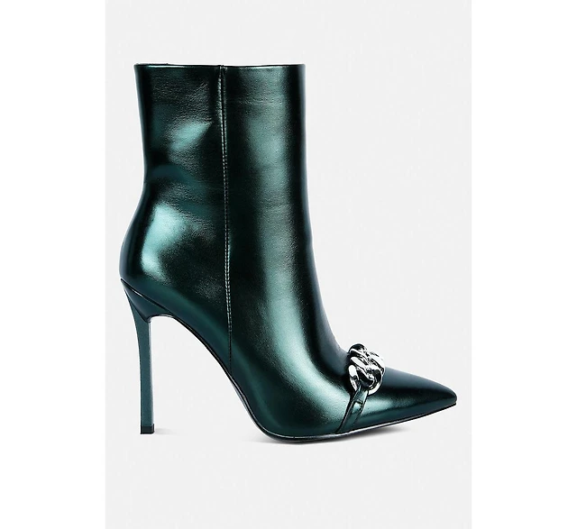 Firefly Metallic Chain Embellished Stiletto Ankle Boots