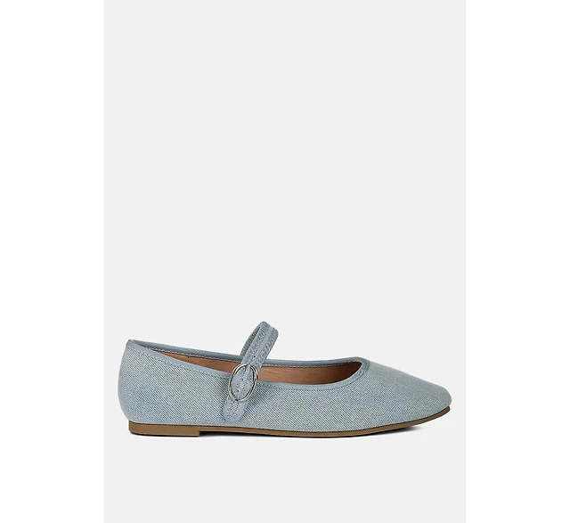 London Rag Iker Classic Denim Pin Buckle Womens Ballerinas