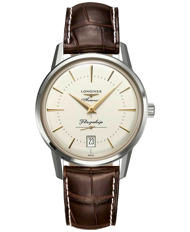 Longines Unisex Swiss Automatic Flagship Heritage Brown Leather Strap Watch 39mm