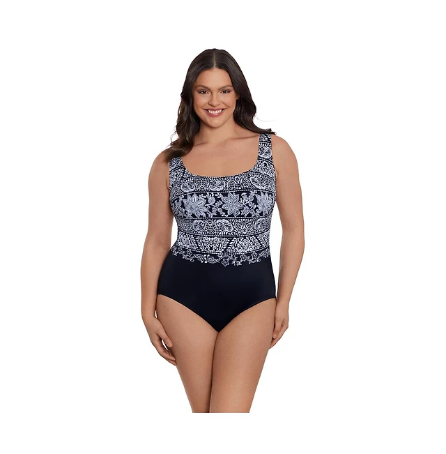 Longitude by Mimi Flamingo Women's Paisley Garden Fan Tank One Piece Swimsuit