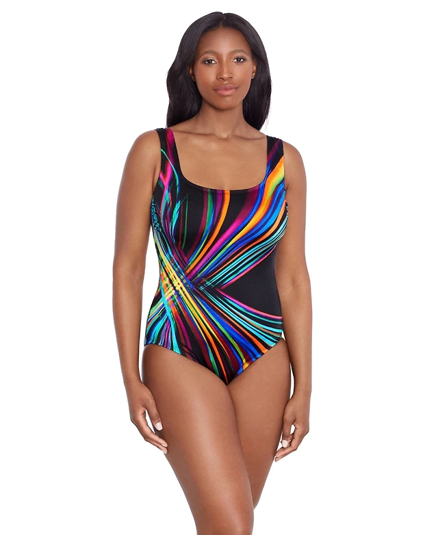 Longitude by Mimi Flamingo Women's Zenon Panel Scoopneck Tank One Piece Swimsuit