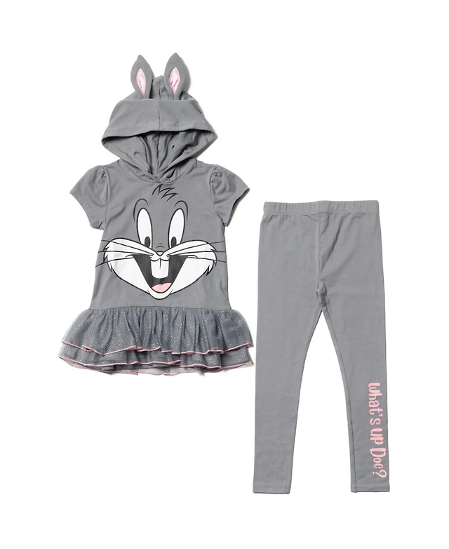Looney Tunes Girls Buggs Bunny Cosplay T-Shirt Dress and Leggings Outfit Set