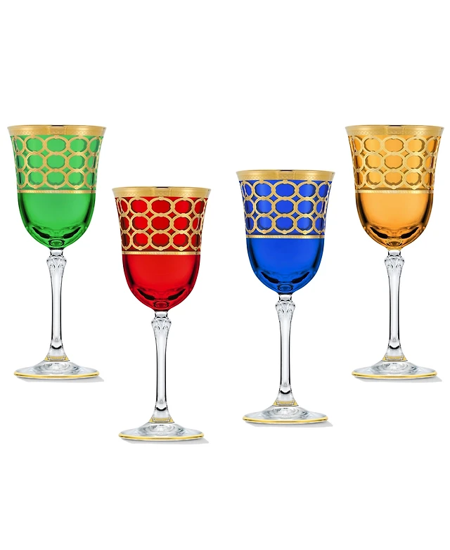 Lorren Home Trends Multicolor Red Wine Goblet with Gold-Tone Rings, Set of 4