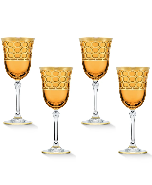 Lorren Home Trends Amber Color White Wine Goblet with Gold-Tone Rings, Set of 4