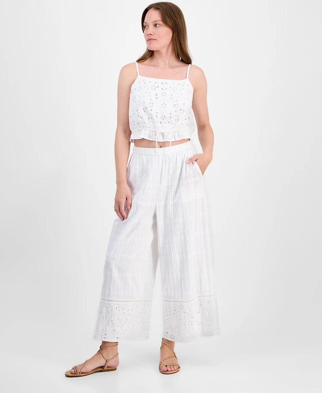 Lucky Brand Women's Cotton High-Rise Cutwork Wide-Leg Pants
