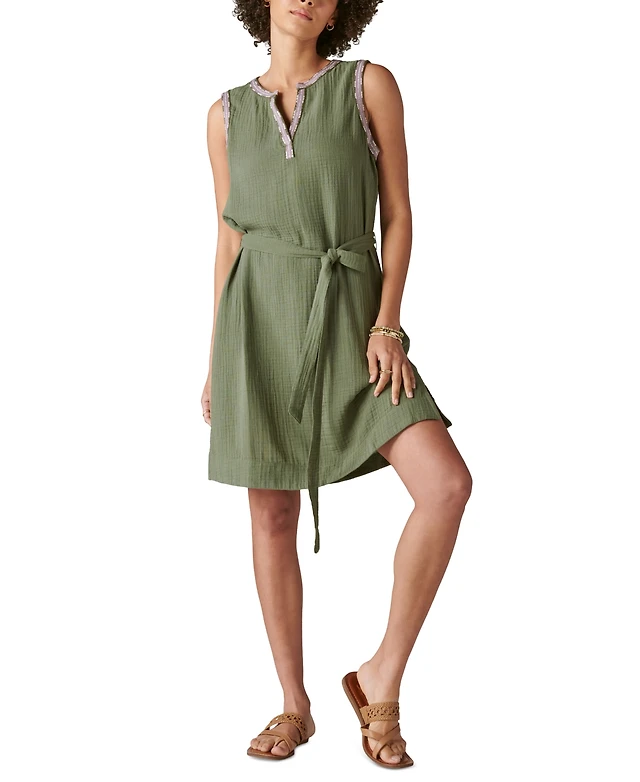 Lucky Brand Women's Embroidered Sleeveless Popover Dress