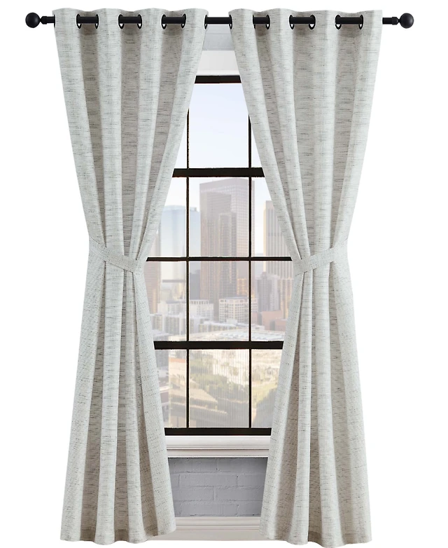 Lucky Brand Sierra Textured Light Filtering Grommet Window Curtain Panel Pair With Tiebacks Collection