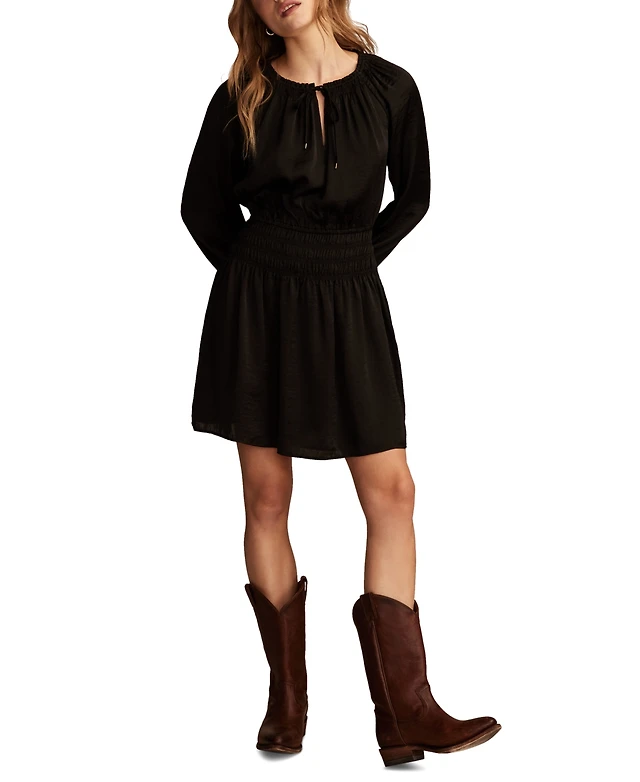 Lucky Brand Women's Satin Smocked-Trim Mini Dress