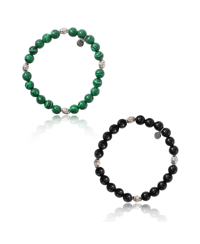 Lucky Brand Black and Green Beaded Stretch Bracelets - Two-Piece Natural Stone Set for Men