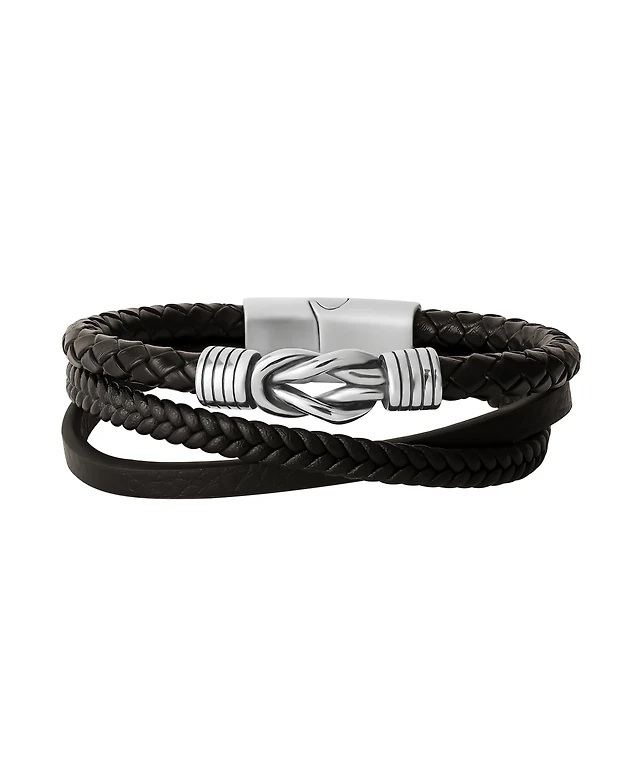 Lucky Brand Braided Leather Bracelet with Cross - Brown Leather Wrap Bracelet for Men