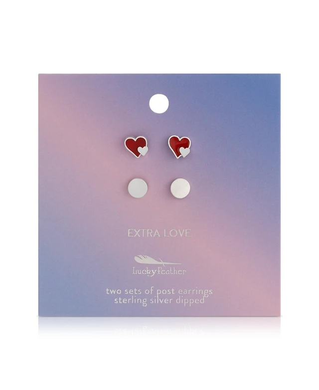 Lucky Feather Earring Set - 2 pr - Hearts/rounds (silver) - Extra Love