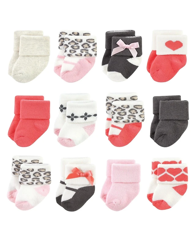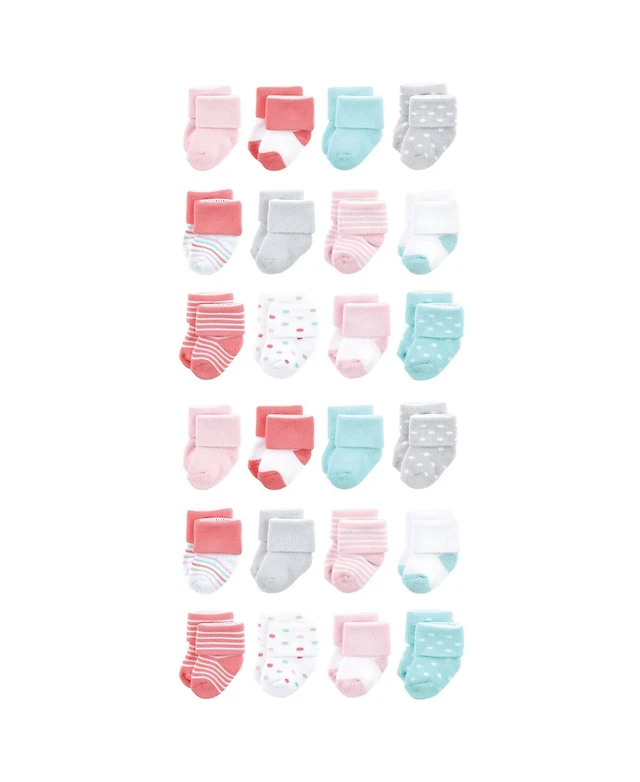 Luvable Friends Baby Girls Essential 24-Count Soft Terry Sock Assortment