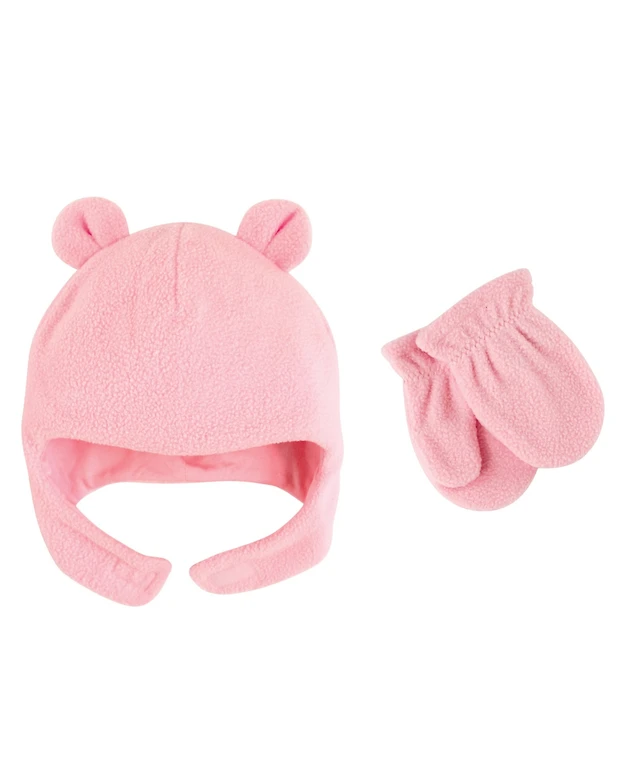 Luvable Friends Baby Girls Beary Cozy Hat and Mitten Set