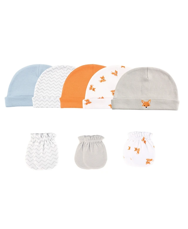 Luvable Friends Baby Boys Guys' Soft Cotton Hat & Mitten Set