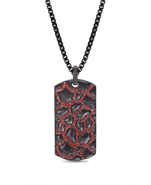 LuvMyJewelry Sterling Silver Garnets Fiery Ascent Design Rhodium Plated Tag Chain