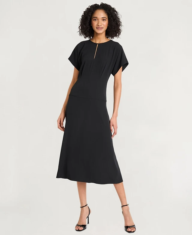 Luxely Women's Crepe Short-Sleeve Midi Fit & Flare Dress