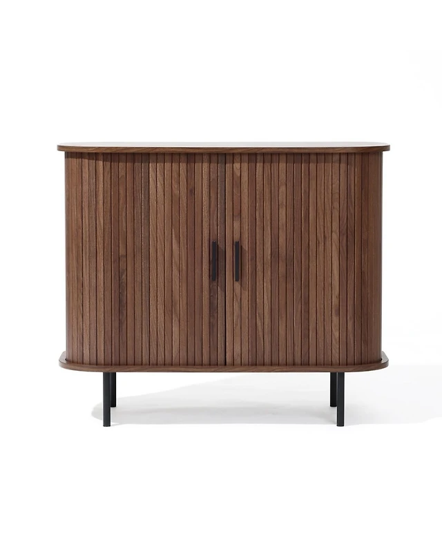 LuxenHome Mid-Century Modern Coffee Table with Storage and Slatted Sliding Doors Oval Center Table