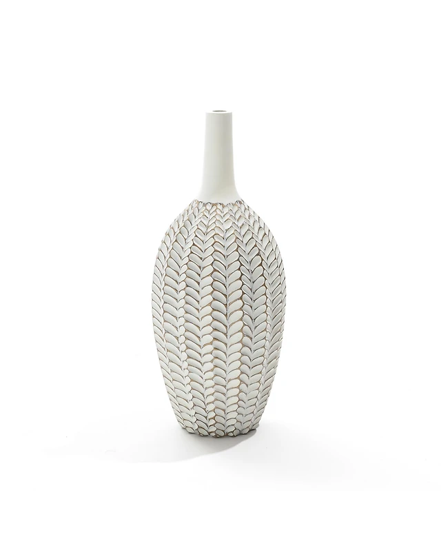 LuxenHome Classic Ivory White Ceramic Modern Head 9.6-Inch Tall Vase