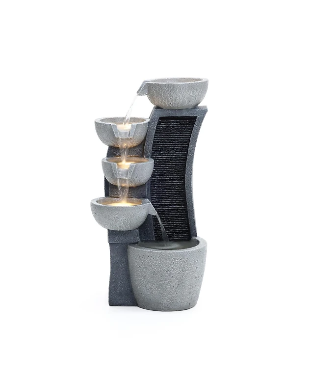 LuxenHome 5-Bowl Multi-Gray Modern Sculpture 26-Inch Tall Resin Fountain with Lights