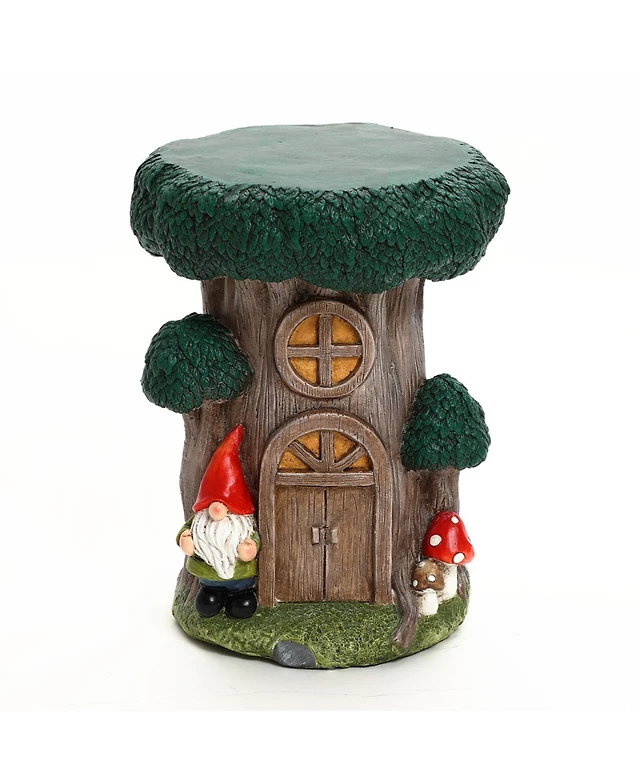 LuxenHome Gnome Tree Stump MgO Indoor and Outdoor Sculpture Side Table
