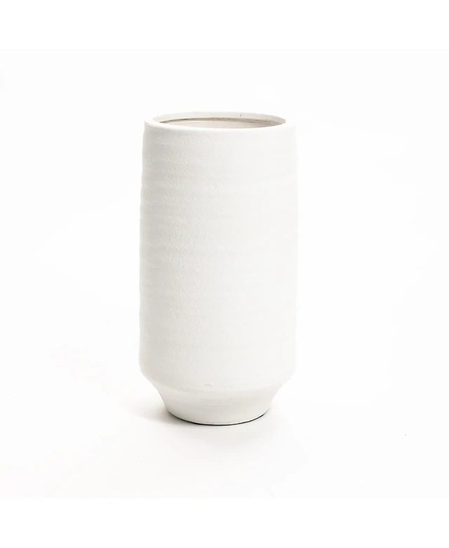 LuxenHome Beige Ribbed Round 15.2-Inch Tall MgO Vase