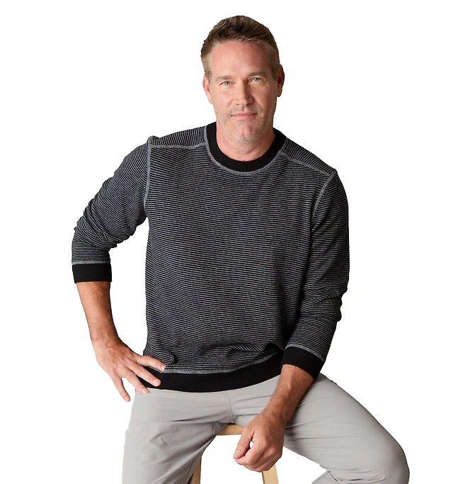 LuxLined Men's Itch-Free Merino Wool Striped Crewneck Sweater with Soft Inner Lining