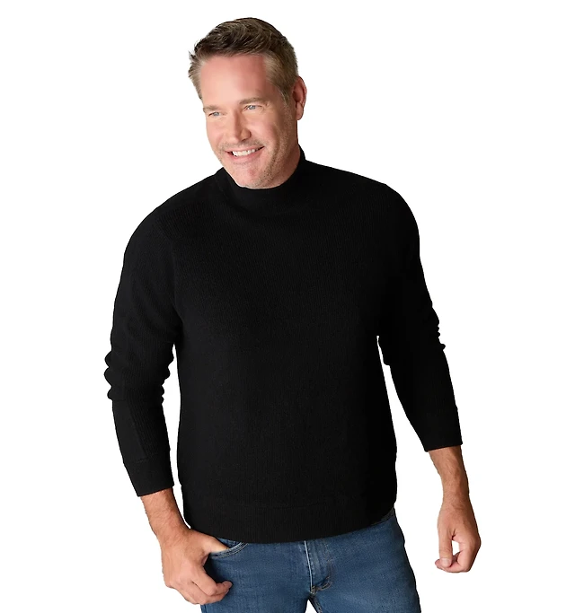 LuxLined Men's Itch-Free Merino Wool Mock Neck Sweater with Soft Inner Lining