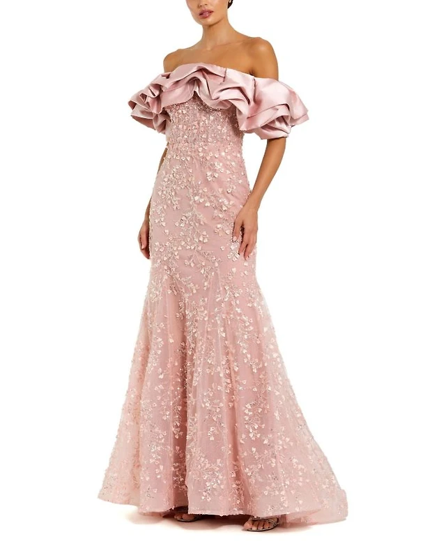Mac Duggal Women's Flounce Sleeve V Neck Trumpet Gown