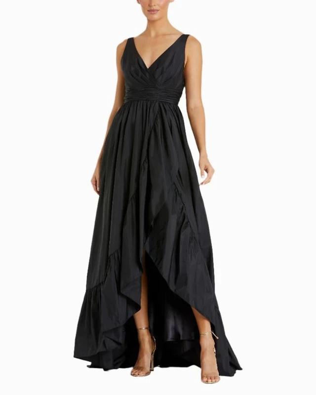 Mac Duggal Women's Deep V Chiffon Sleeveless Ruffle Midi Dress