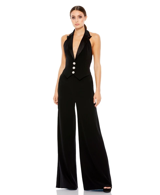 Mac Duggal Women's Black Tuxedo Halter Jumpsuit