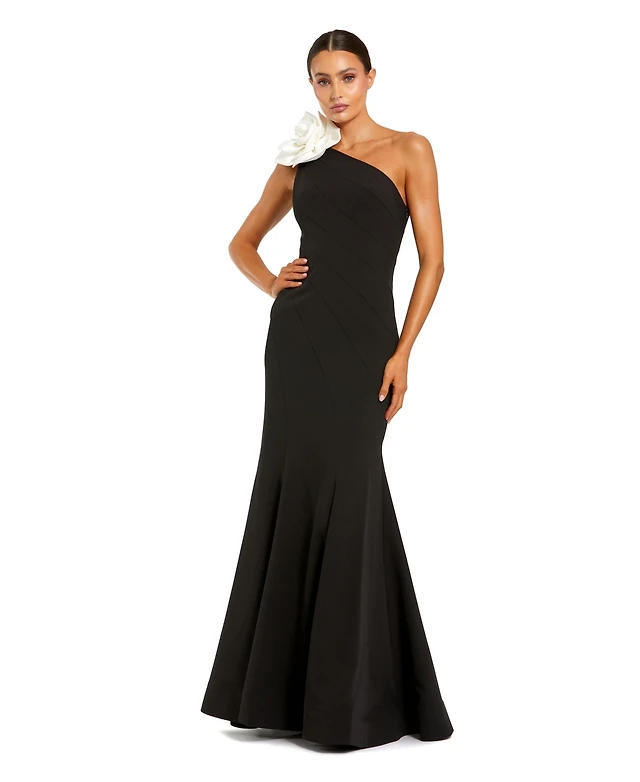 Mac Duggal Women's Crepe One Shoulder Mermaid Gown With 3D Flower