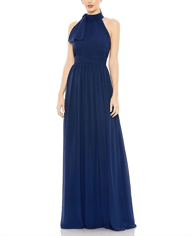 Mac Duggal Chain Trim Keyhole Halter Neck A Line Gown