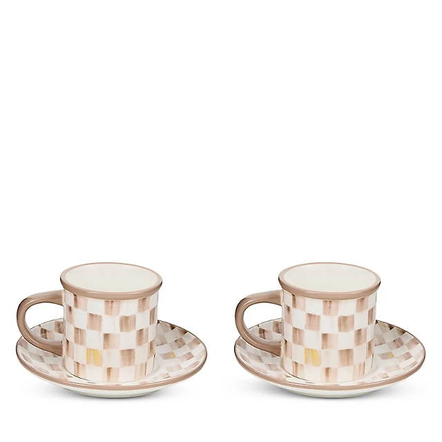MacKenzie-Childs Courtly Check Stoneware Espresso Cup & Saucer, Set of 2