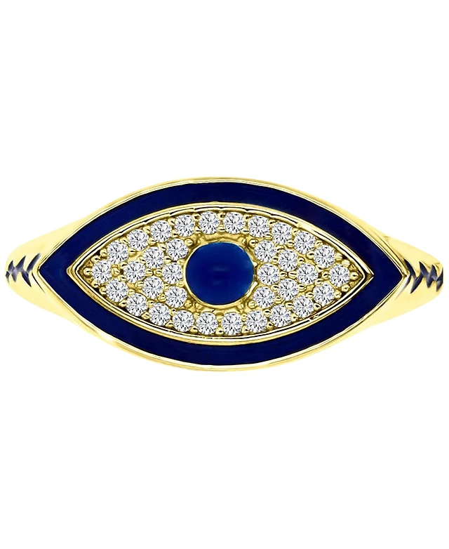 Cubic Zirconia & Enamel Evil Eye Stack Band in 14k Gold-Plated Sterling Silver