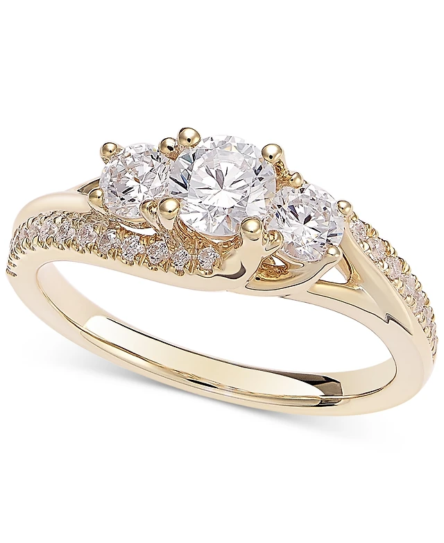 Diamond Pear-Cut Halo Three Stone Beaded Engagement Ring (3/4 ct. t.w.) in 14k Gold