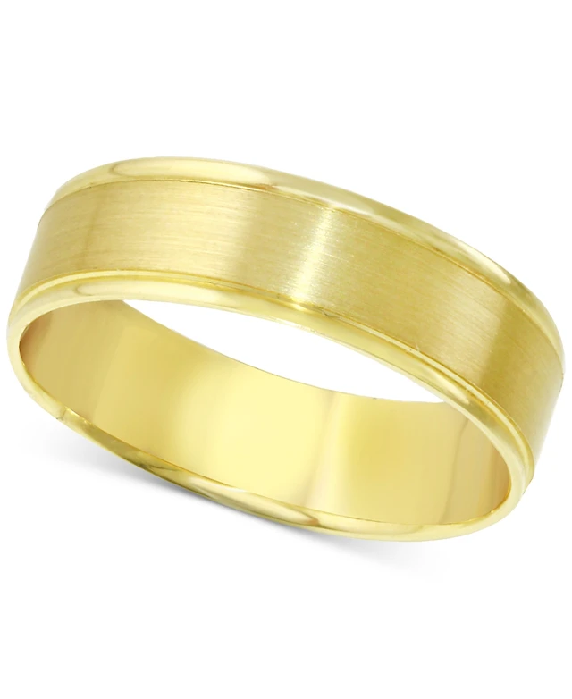 Men's Polished & Textured Beveled Edge Wedding Band in 14k Gold