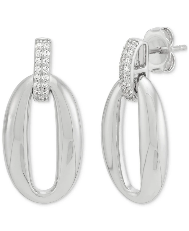 Diamond Pave Tapered Hoop Earrings (1 ct. t.w.) in Sterling Silver, Created for Macy's