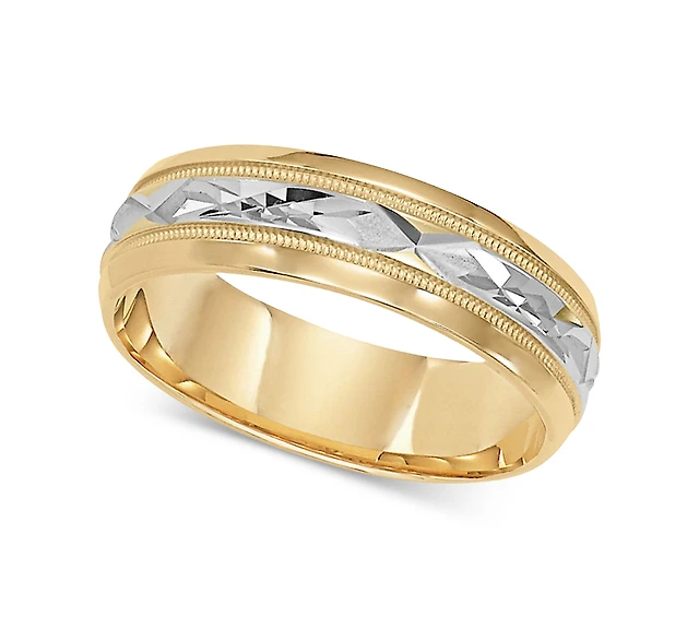 Two-Tone Decorative Beaded Edge Wedding Band 14k Gold & White