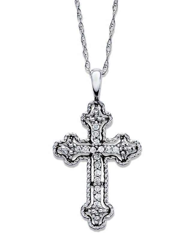 Diamond Antique Cross Pendant Necklace 14k White, Yellow, or Rose Gold (1/10 ct. t.w)