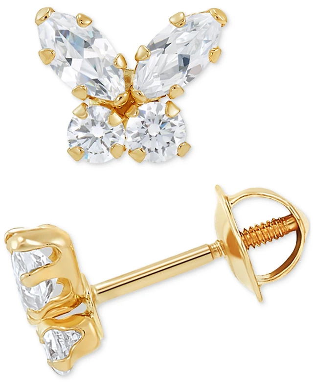 Children's Cubic Zirconia Butterfly 15" Pendant Necklace in 14k Gold
