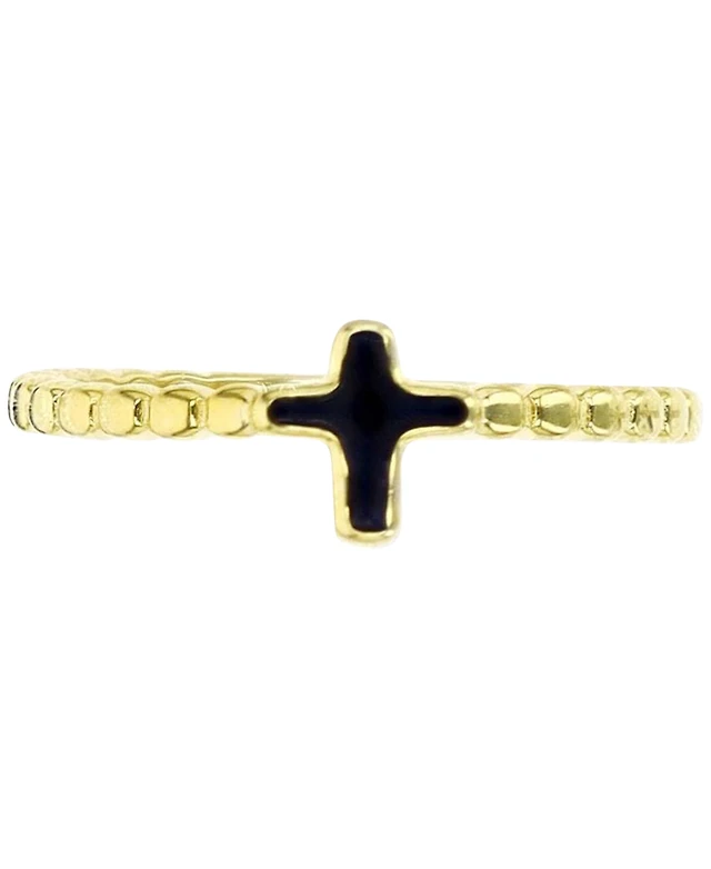 Cubic Zirconia & Enamel X Band 14k Gold-Plated Sterling Silver