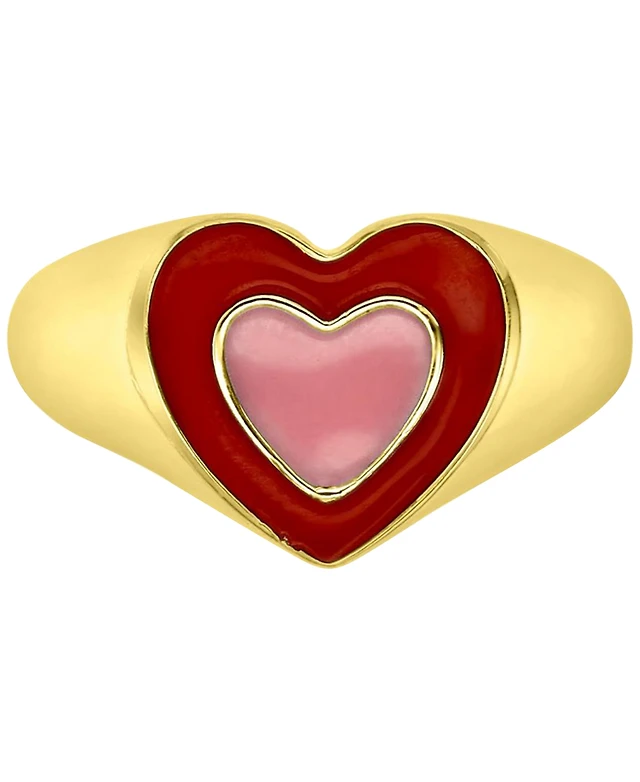 Red & Pink Enamel Heart Band 14k Gold-Plated Sterling Silver