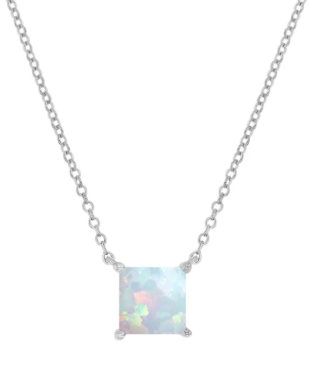 Lab-Grown Opal Square Cut Solitaire 18" Pendant Necklace (5/8 ct. t.w.)