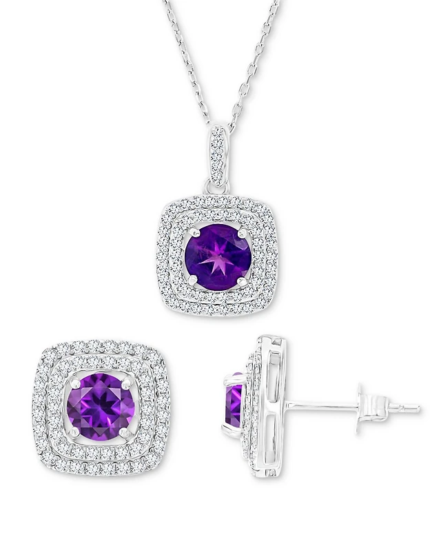 2-Pc. Set Amethyst (2-5/8 ct. t.w.) & Lab-Grown White Sapphire (7/8 ct. t.w.) Pendant Necklace & Matching Stud Earrings in Sterling Silver