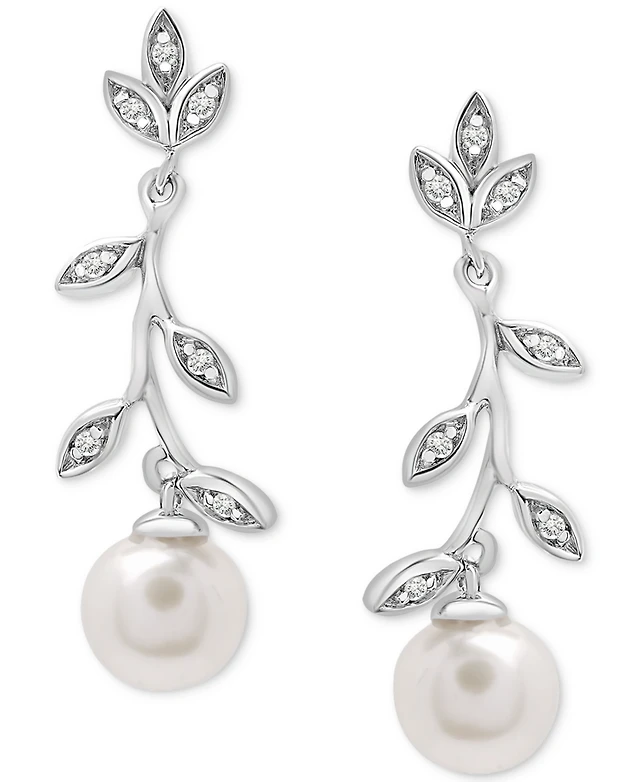 Cultured Freshwater Pearl (5mm) & Diamond Accent Vine Drop Earrings in Sterling Silver
